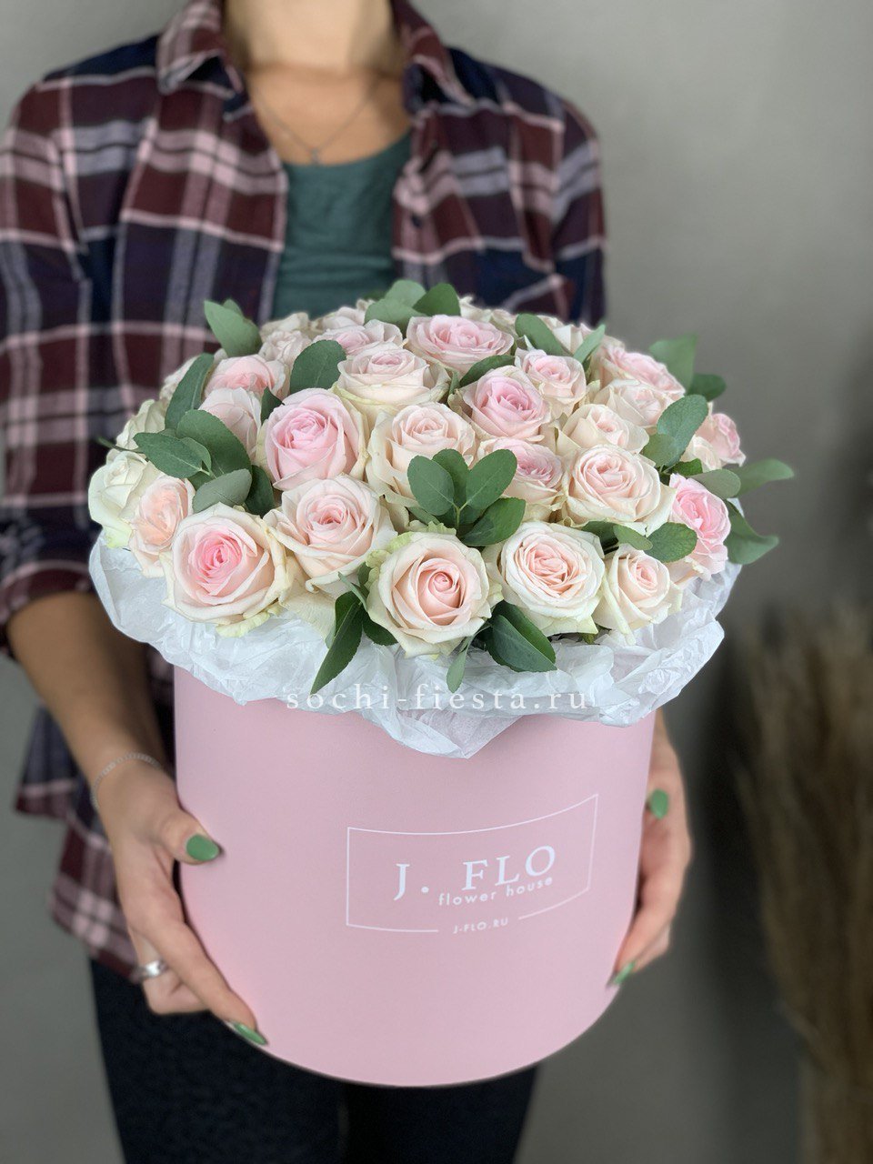 Сто одна кенийская роза в едином цилиндре — это впечатляющий масштаб и безупречная симметрия. Плотный силуэт и насыщенный цвет создают мощное визуальное присутствие. Композиция звучит сама за себя.