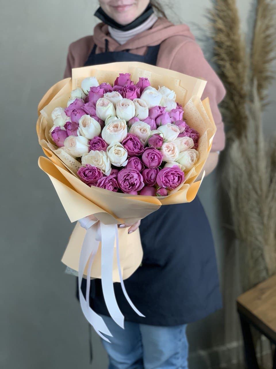 Мы работаем только со свежими цветами — букеты радуют от 7 до 14 дней и дольше при правильном уходе.