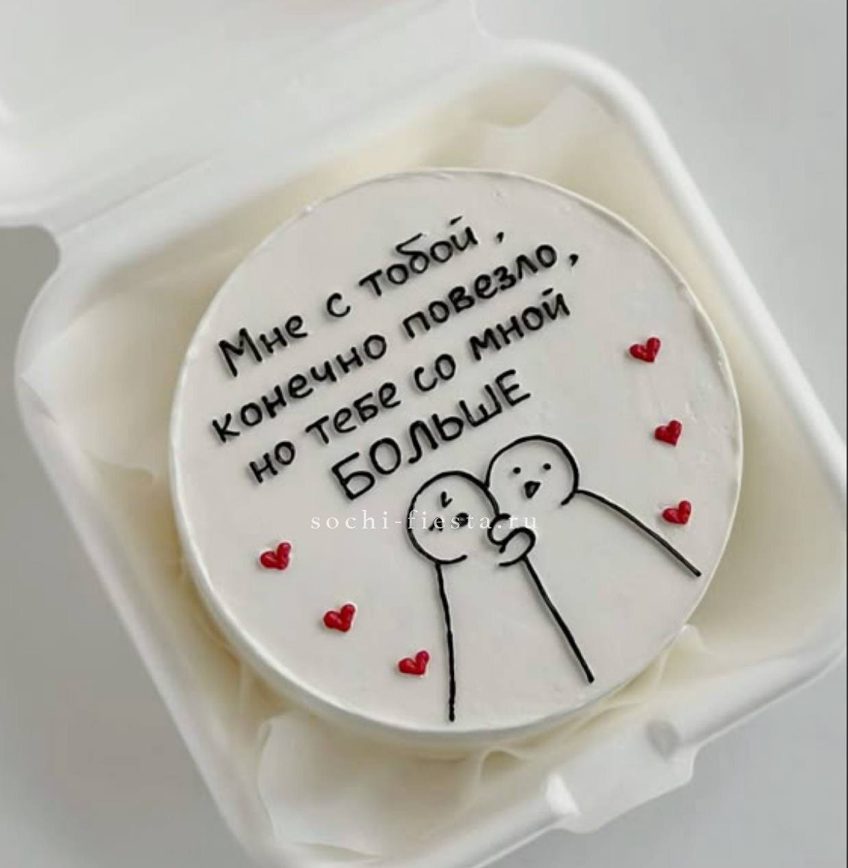 Десерт с тёплым посланием и индивидуальным оформлением, созданный вручную. Начинка на выбор, декор включён, а каждый торт получает свой характер благодаря уникальному дизайну.