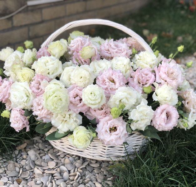 белая эустома под ленту.