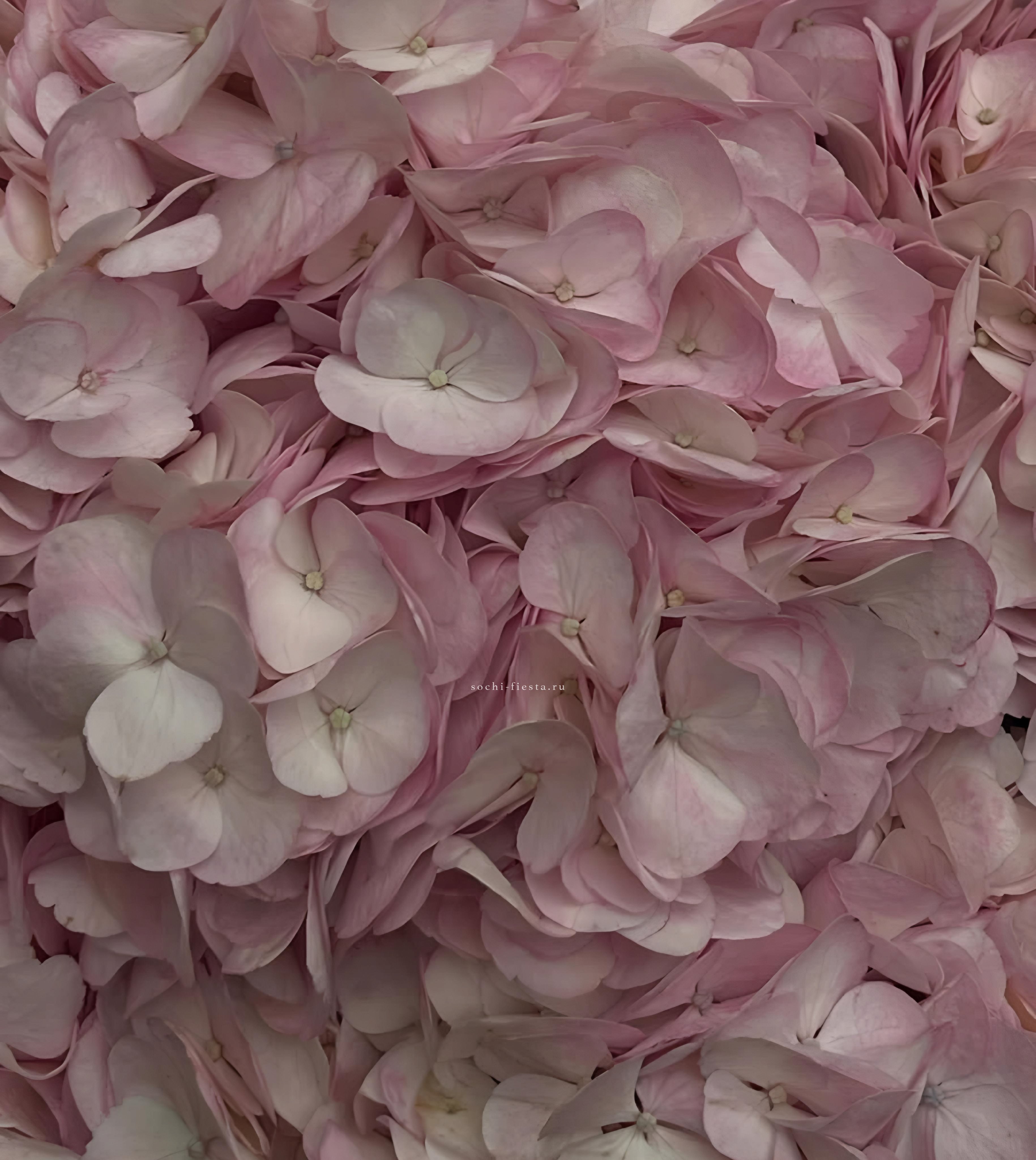 Одиннадцать соцветий гортензии собраны в объемную композицию с естественной воздушностью. Каждая головка раскрывается множеством мелких лепестков, создавая плотное цветовое облако.