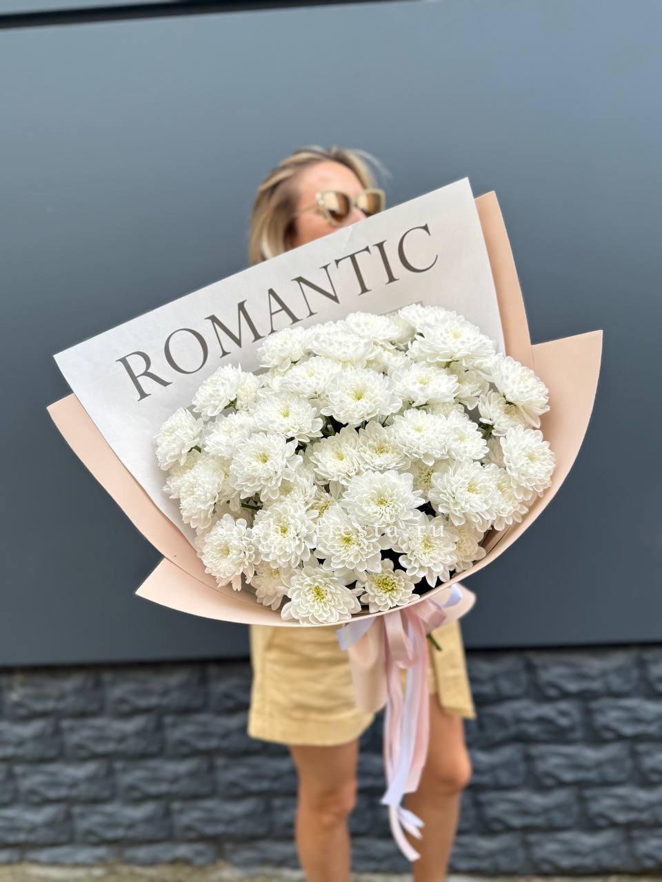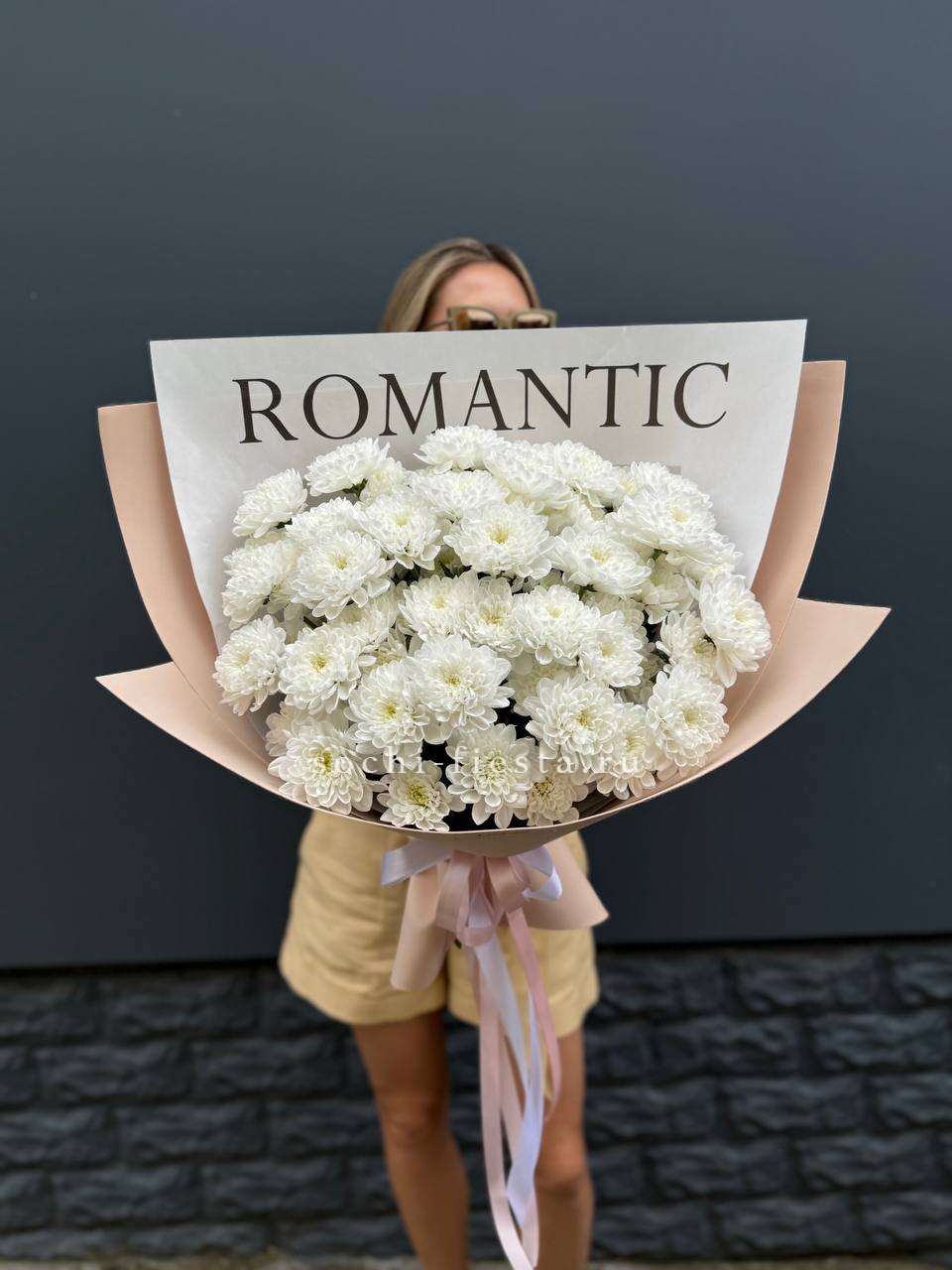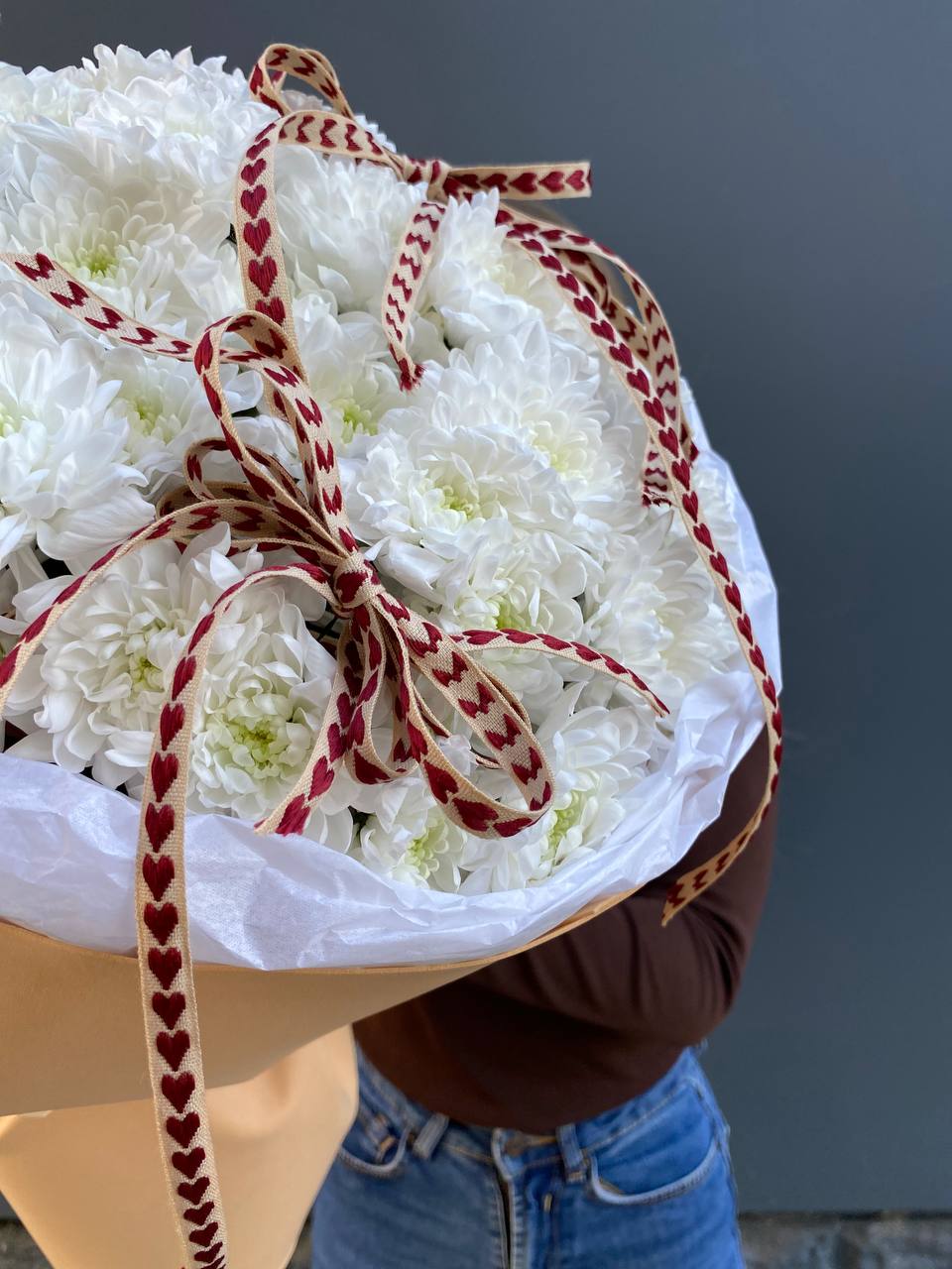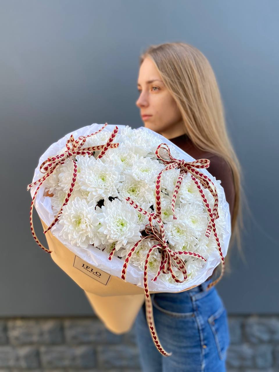 хризантема кустовая - 9 шт., лагурус, фоамиран, пленка,  лента.