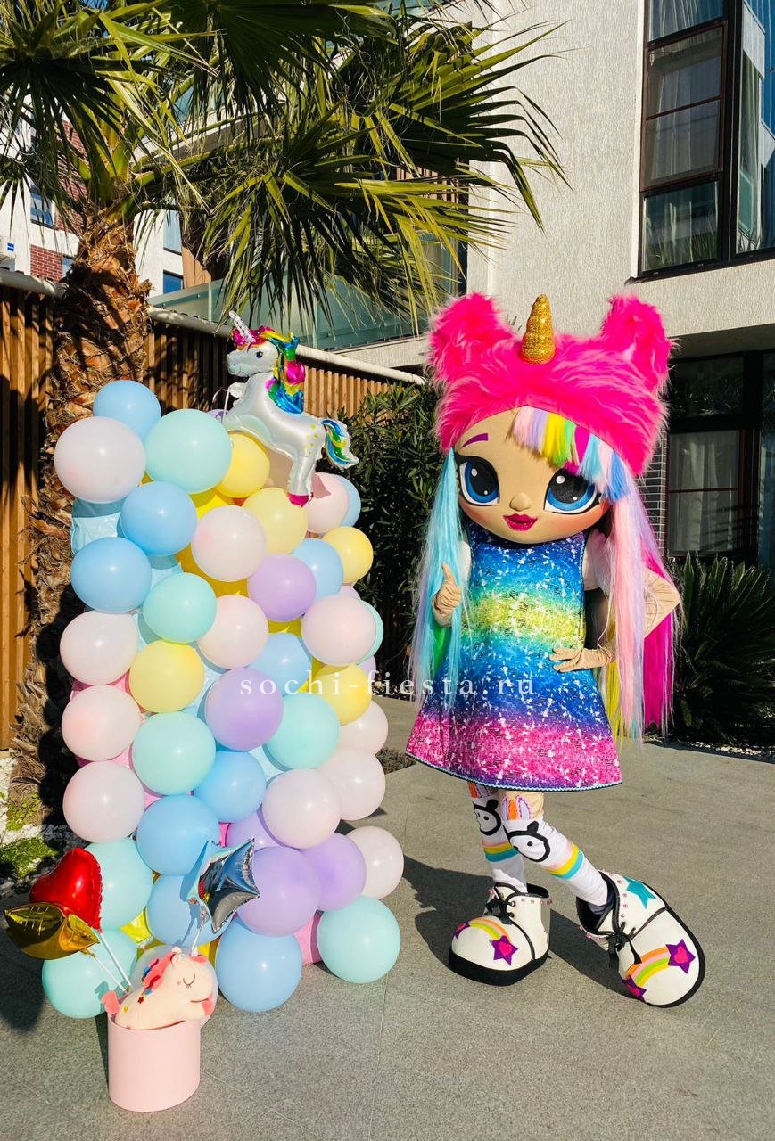 Яркий персонаж в блестящем костюме появляется с музыкой и создаёт момент полной неожиданности. Обнимашки, танцы и фотосессия входят в программу.