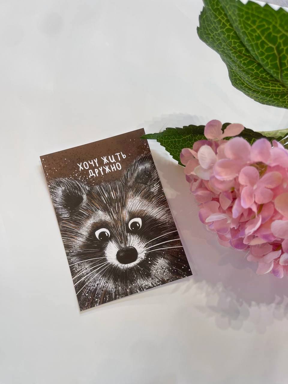 Миниатюрная открытка с забавным енотом добавит теплоты вашему посланию. Внутри поместится несколько строк личных слов, которые сделают момент по-настоящему запоминающимся.