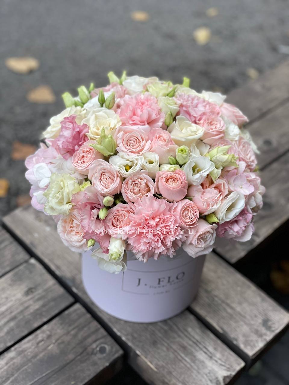 Настоящий взрыв цвета и позитива! Эта пышная и многосоставная композиция в стильной коробке притягивает взгляды богатством форм и оттенков — от нежно-розового до насыщенного белого. Это не просто цветы, а целая история о радости, празднике и восхищении. Подарок, который гарантированно произведет яркое впечатление и останется в памяти надолго.