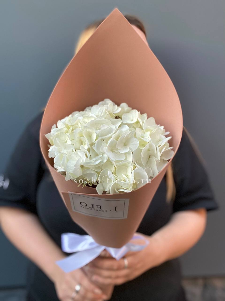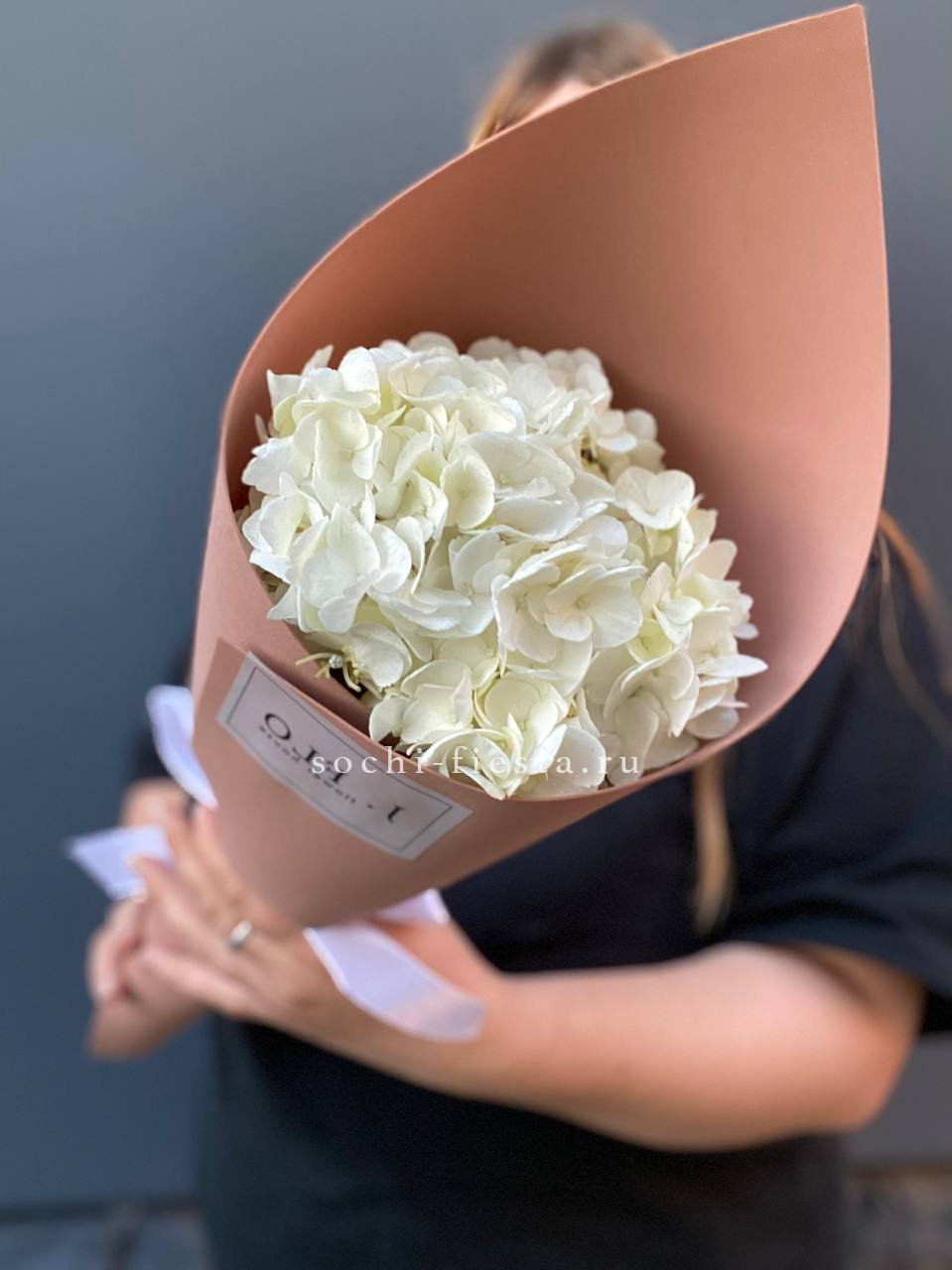 гортензия розовая, лента, дизайнерская упаковка. Цвет гортензий может незначительно отличаться. Данная цена доступна при единовременном заказе от 10 шт.