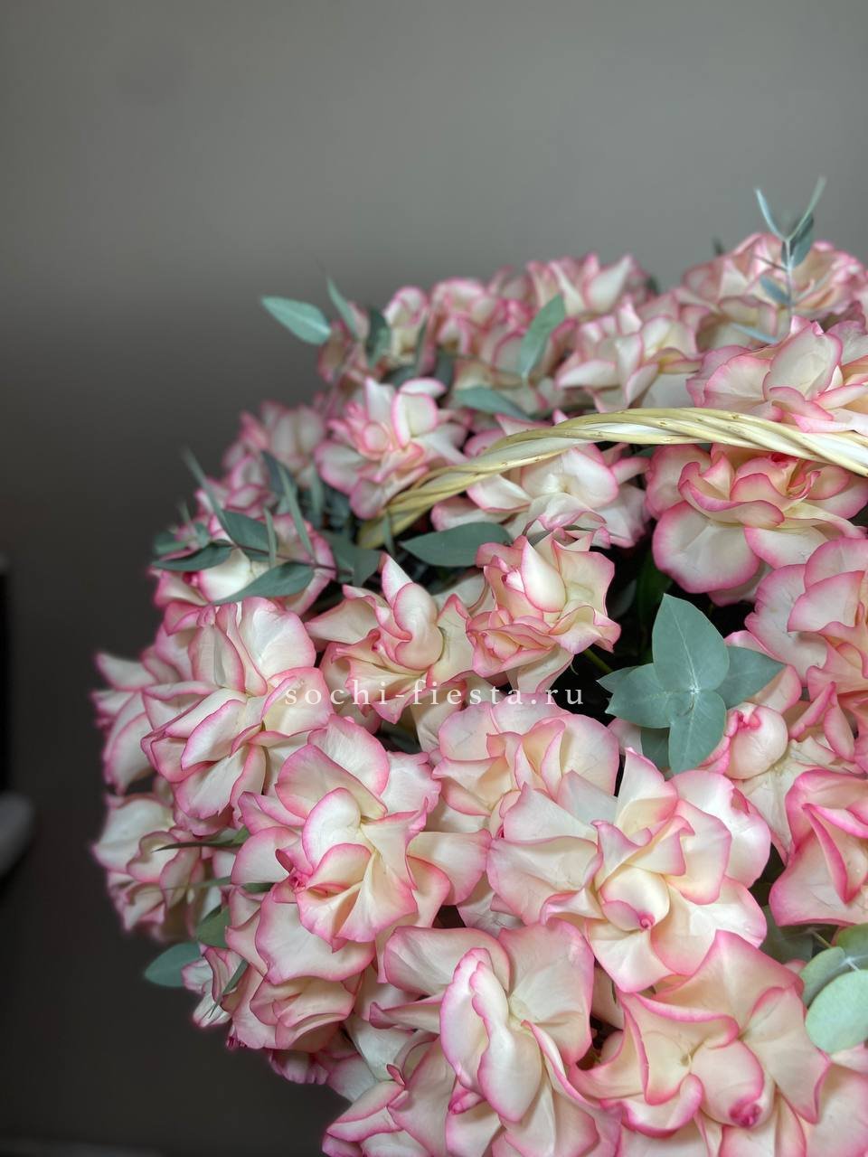 гербера, гортензия, диантус, хайди, эустома, эвкалипт, корзина средняя.