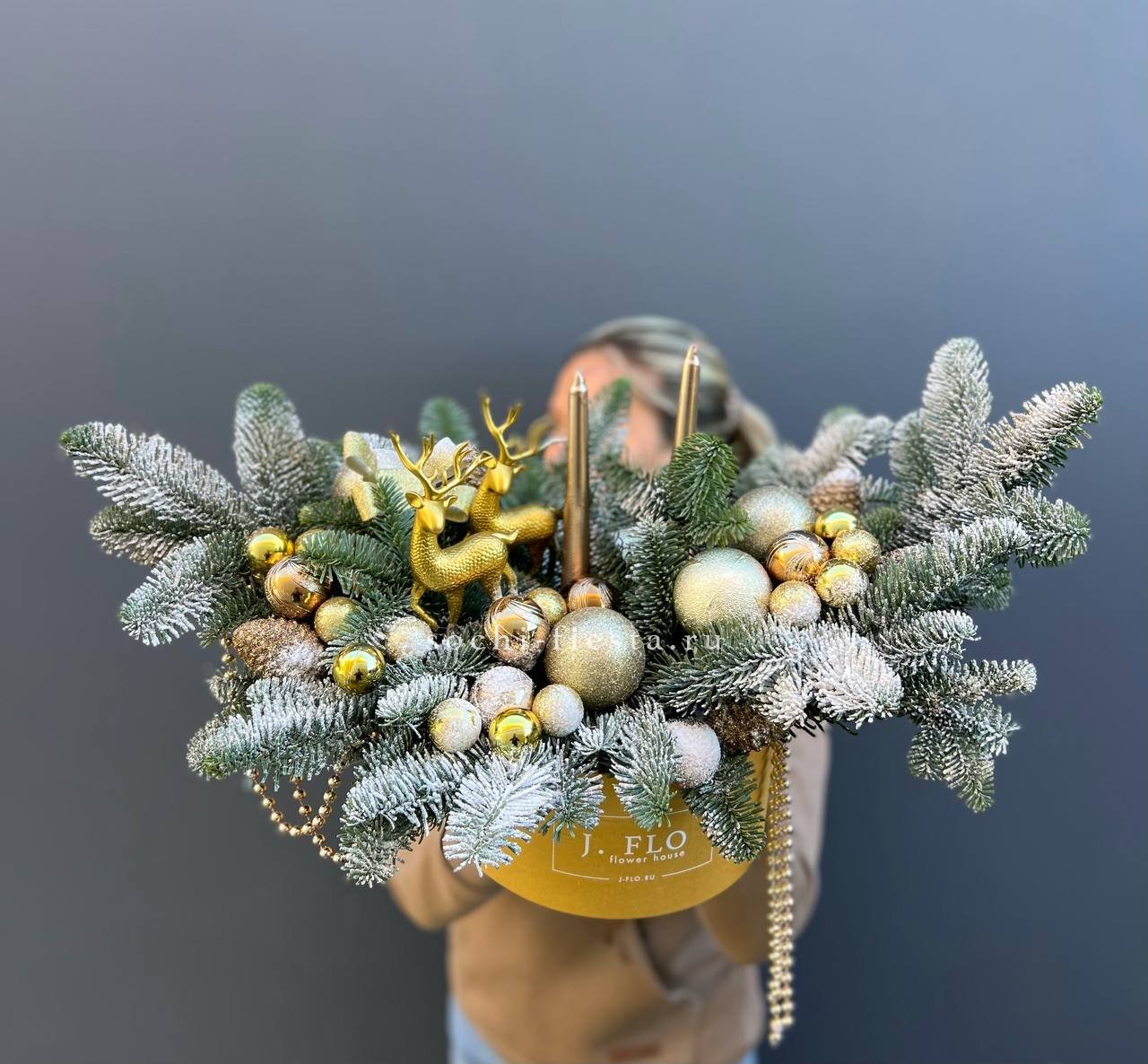 нобилис, цилиндр, оазис, свечи, новогодние игрушки, декор ВНИМАНИЕ! Готовая композиция (декор) может иметь незначительные внешние отличия от примера на фотографии.