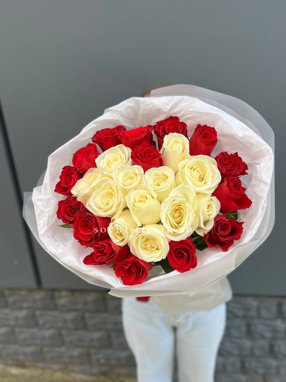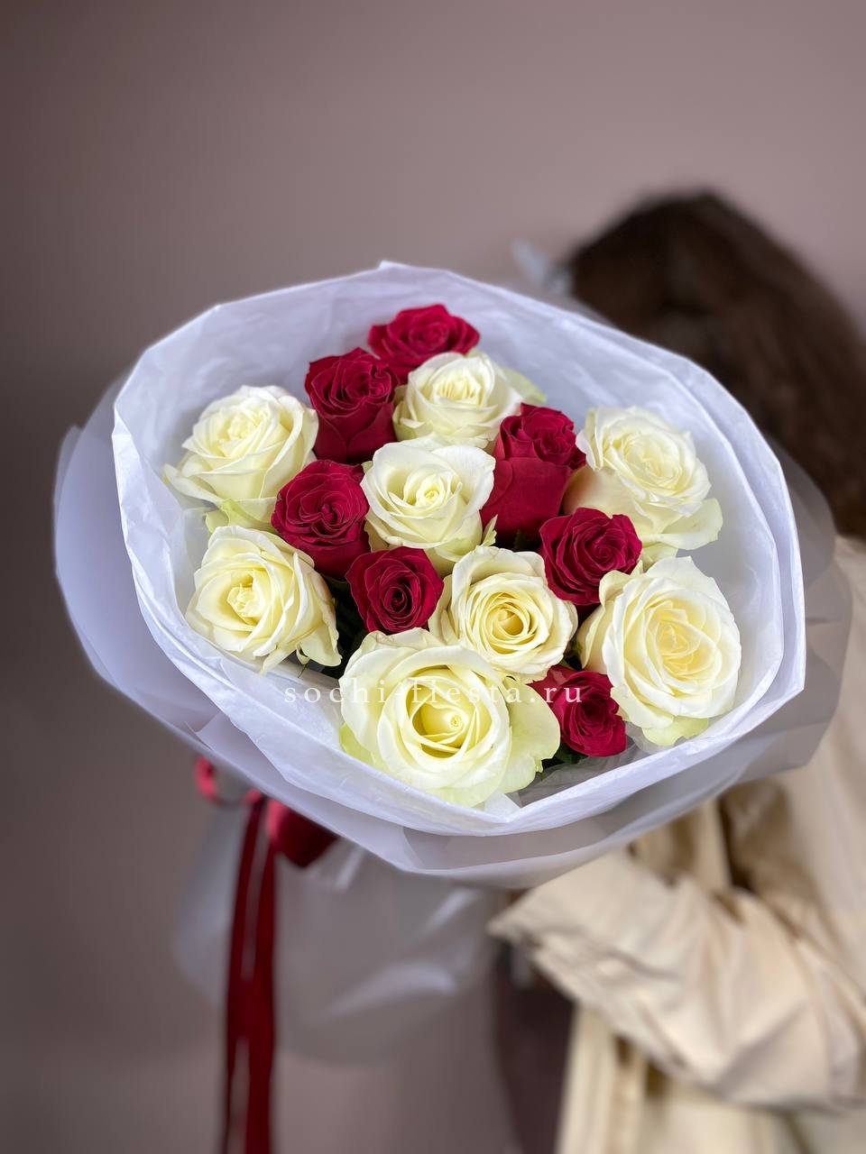 Букет из красных белых 15 роз
