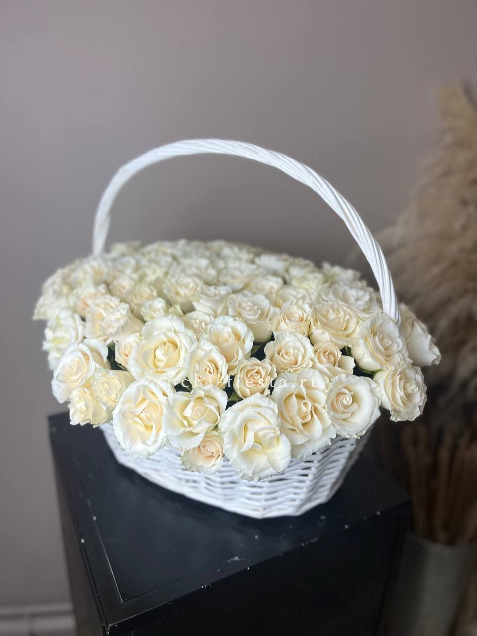 101 белая роза в корзине
