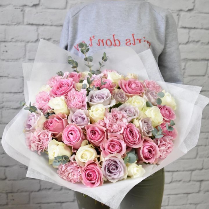 В Томске сборный букет — один из главных флористических форматов. Небольшой город не нуждается в авангарде и экспериментах: здесь ценят понятное, красивое и живое. Сборный букет с розами, хризантемами и сезонными акцентами — то, что флорист в Томске делает изо дня в день, и делает хорошо.