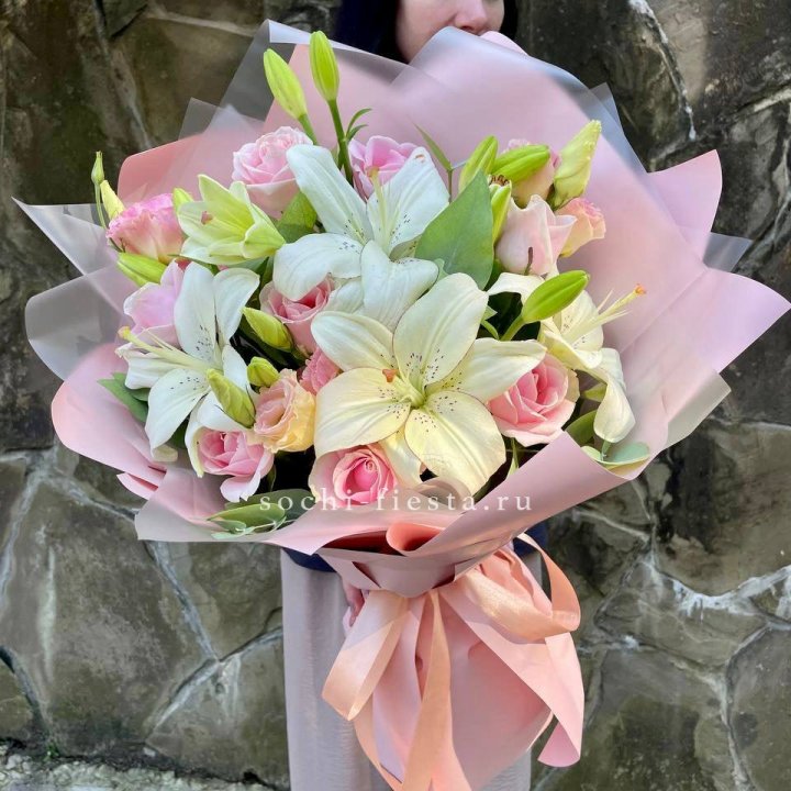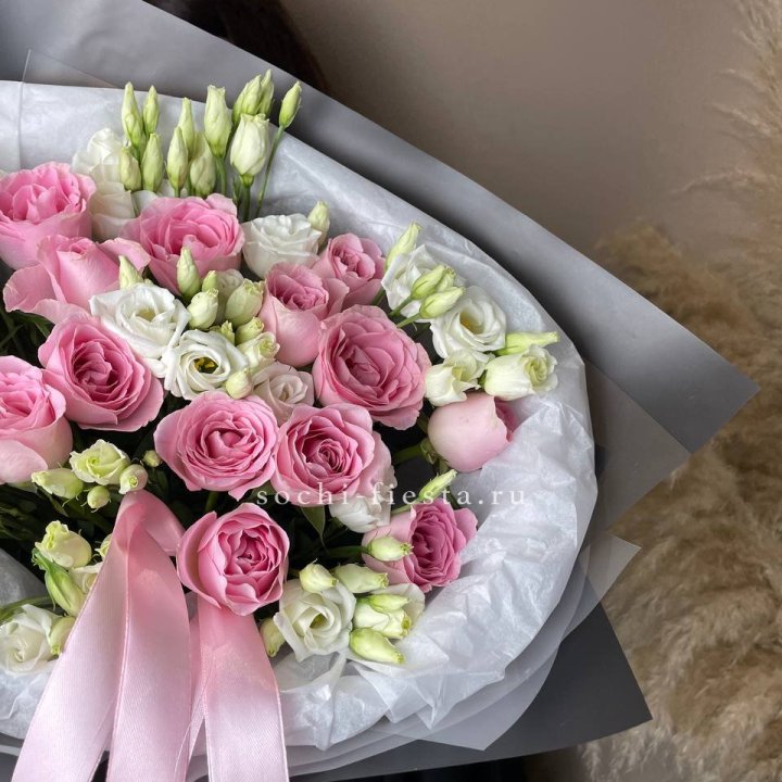 сборный букет из роз и альстромерии для небольшого города в красивой упаковке