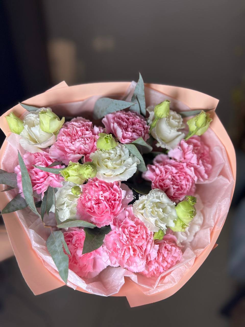 Для заказа товара "Букет гвоздик и эустом "Сири"" с доставкой в Томске нажмите в корзину
