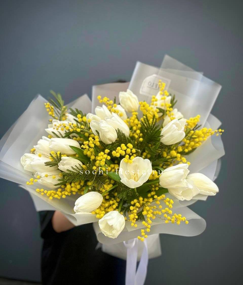 Букет тюльпанов и мимозы