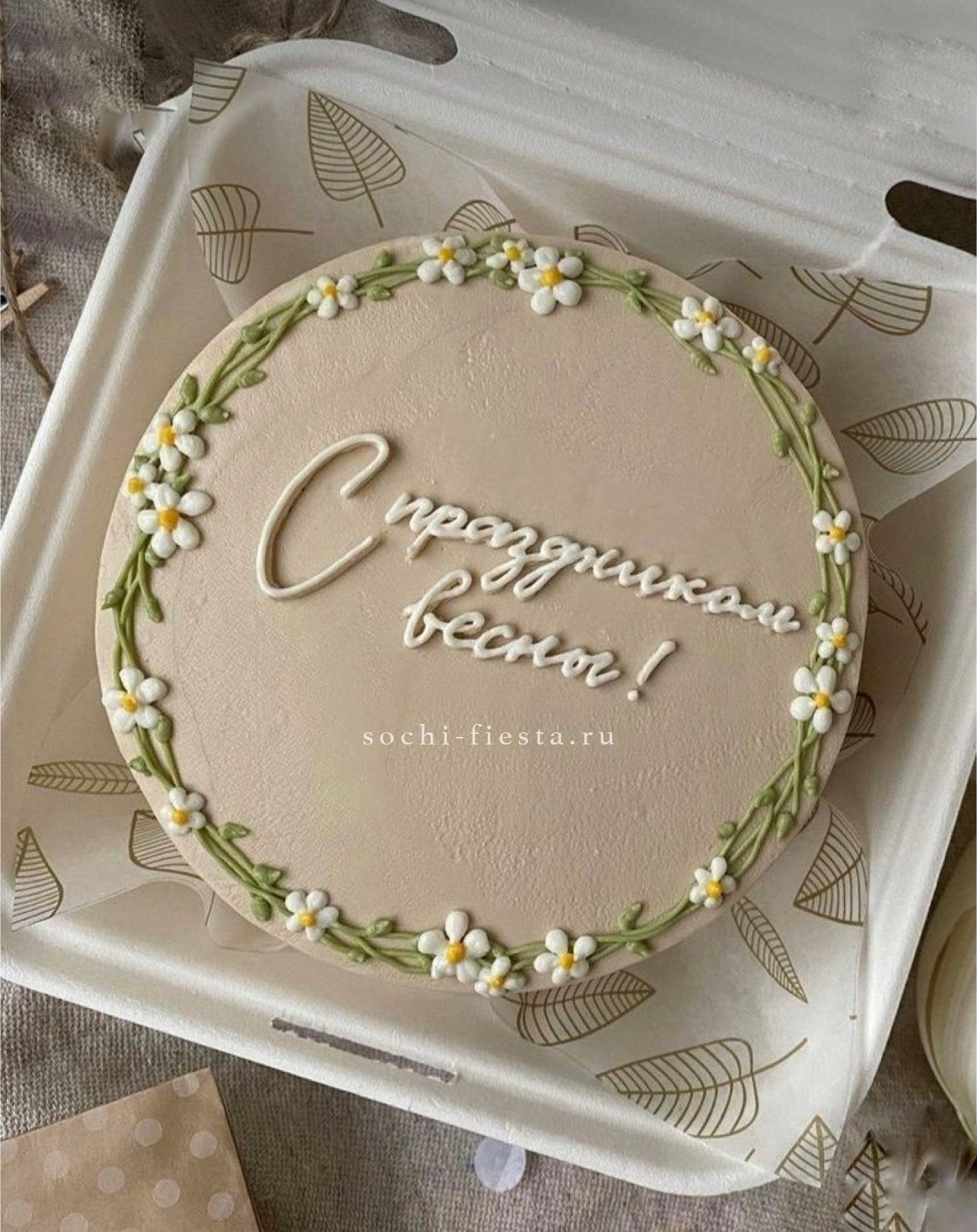 Слова благодарности становятся частью десерта, который умещается на ладони. Тёплая гамма крема и деликатный декор передают искренность без громких жестов.